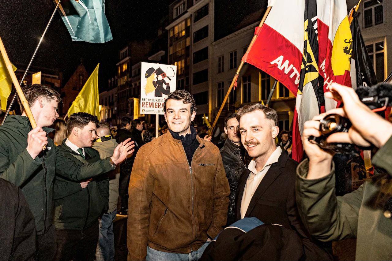 Knowledge, though, wasn’t the main attraction for the night. The ‘Nationalistische Studentenvereniging’ (NSV!: Nationalist Student Union) was holding their yearly demonstration on Thursday the 26th of March. Every year, the demo switches between the three main university-cities of the country: Antwerp, Ghent and Leuven. And, just like last year, a lecture is held by the foreign guest of honour. The evening before the Remigration-demo in Ghent, Austrian Identitarian activist Martin Sellner spoke on the importance of activism. This year, the speaker was the great American patriot Jared Taylor: founder of the American Renaissance Institute and one of the greatest advocates for White self-rule in the last 40 years.