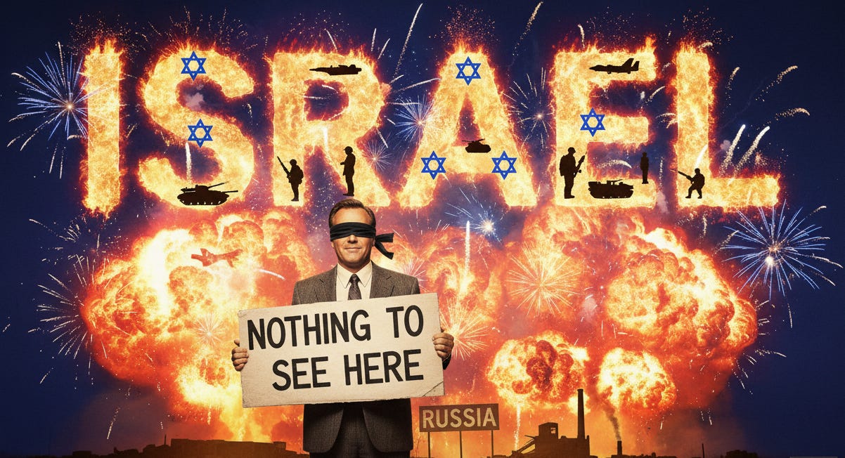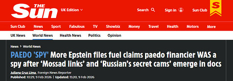 The media isn’t even trying very hard. They’re not constructing elaborate alternative theories. They’re not explaining how Russian involvement makes sense given the Israeli connections. They’re relying on your laziness when you skim the headlines. They’re just saying “Epstein” and “Russia” in the same title. Confident that most people won’t look past that headline. Won’t check the evidence. Won’t be asking “why”.