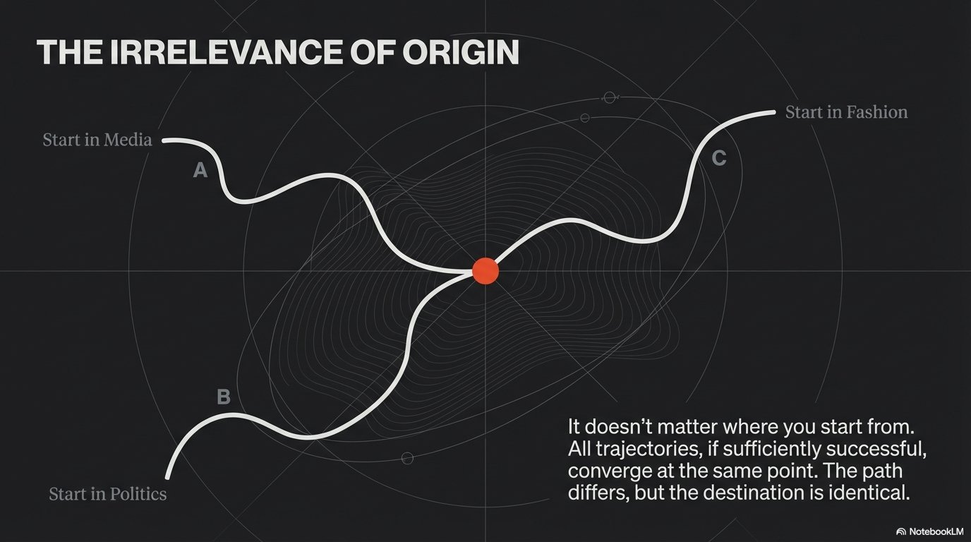 The meritocratic myth suggests that advancement is a reward for talent or service to the public. However, the Epsteino-centric reality is far more clinical: high-level career advancement is merely the mechanism of convergence toward the core.
