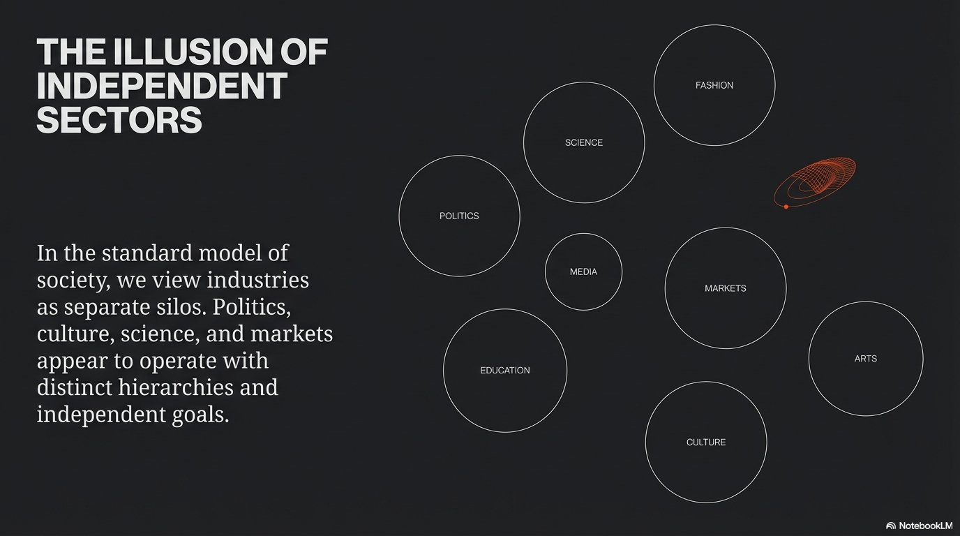 3. Elite Interest Homogenization: The gravitational pull toward the nucleus ensures that the interests of the elite are unified, rendering the public-facing distinctions between different social sectors irrelevant.