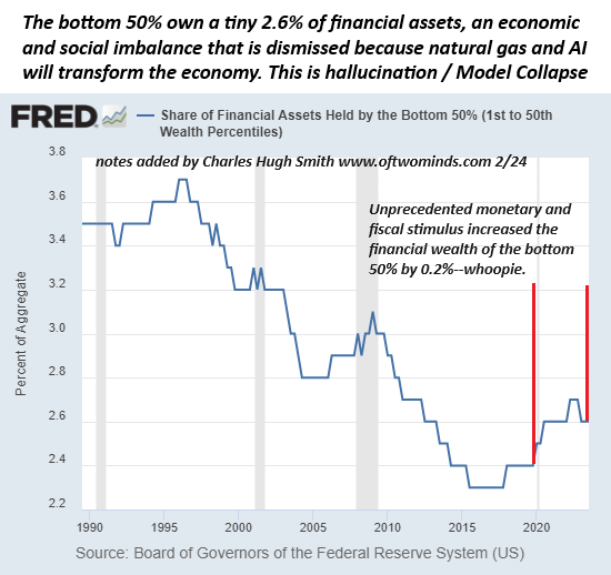 That the inhabitants of “Mouse Utopia” are not focused on how natty gas and AI are going to make Utopia even more utopian is lost in the current model collapse: antisocial behaviors are accelerating due to the the artificial nature and exploitive structure of our “Mouse Utopia,” but these realities aren’t measured and so they don’t exist in the current model’s self-referential hallucinations: