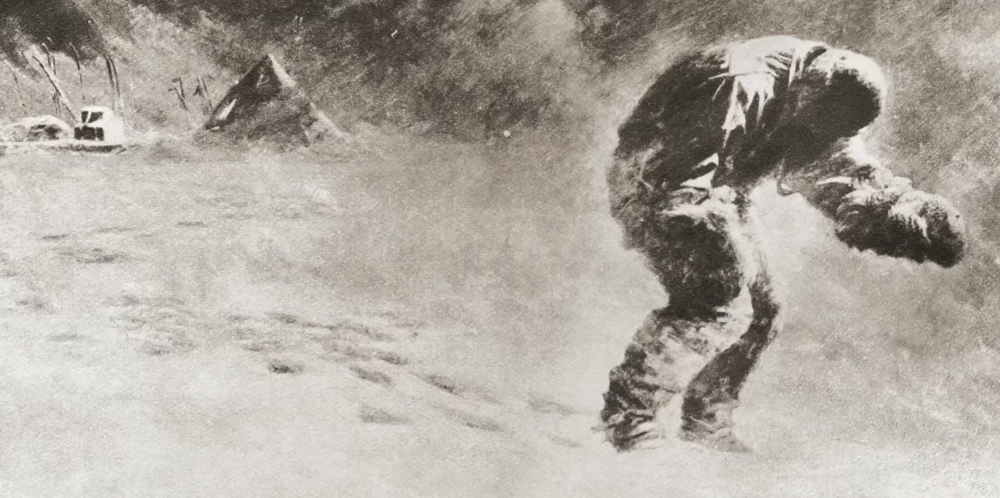 In the tent at One Ton Camp, Scott’s men were literally living on the boundary of life and death, history and myth. Their final struggle was a Faustian act: striving without guarantee of salvation. Scott even told his wife in a letter that the field of battle “ought not to be a place for tears, but for high courage” as though believing even death could be made heroic. That conflation of exploration and existential trial is the very definition of the metaphysical quest. The men were not just seeking a geographic point; they were grappling with the infinite.