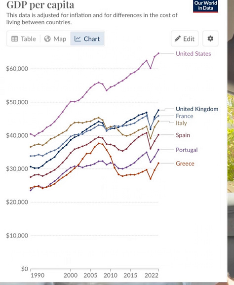 Not one European economy, including Britain, is richer than Mississippi, the poorest state in the U.S. Fertility has crashed, with not enough young to pay for the old. They can’t even afford air conditioning. The entire continent has been looted by the conscienceless rich. They have no AI capacity, and no industry worth much of anything. They have crippled the ingenuity and creativity of an entire continent. Every individual has been knee-capped, entire generations of kids have turned to drugs and disgusting urban lifestyles which end in early death.