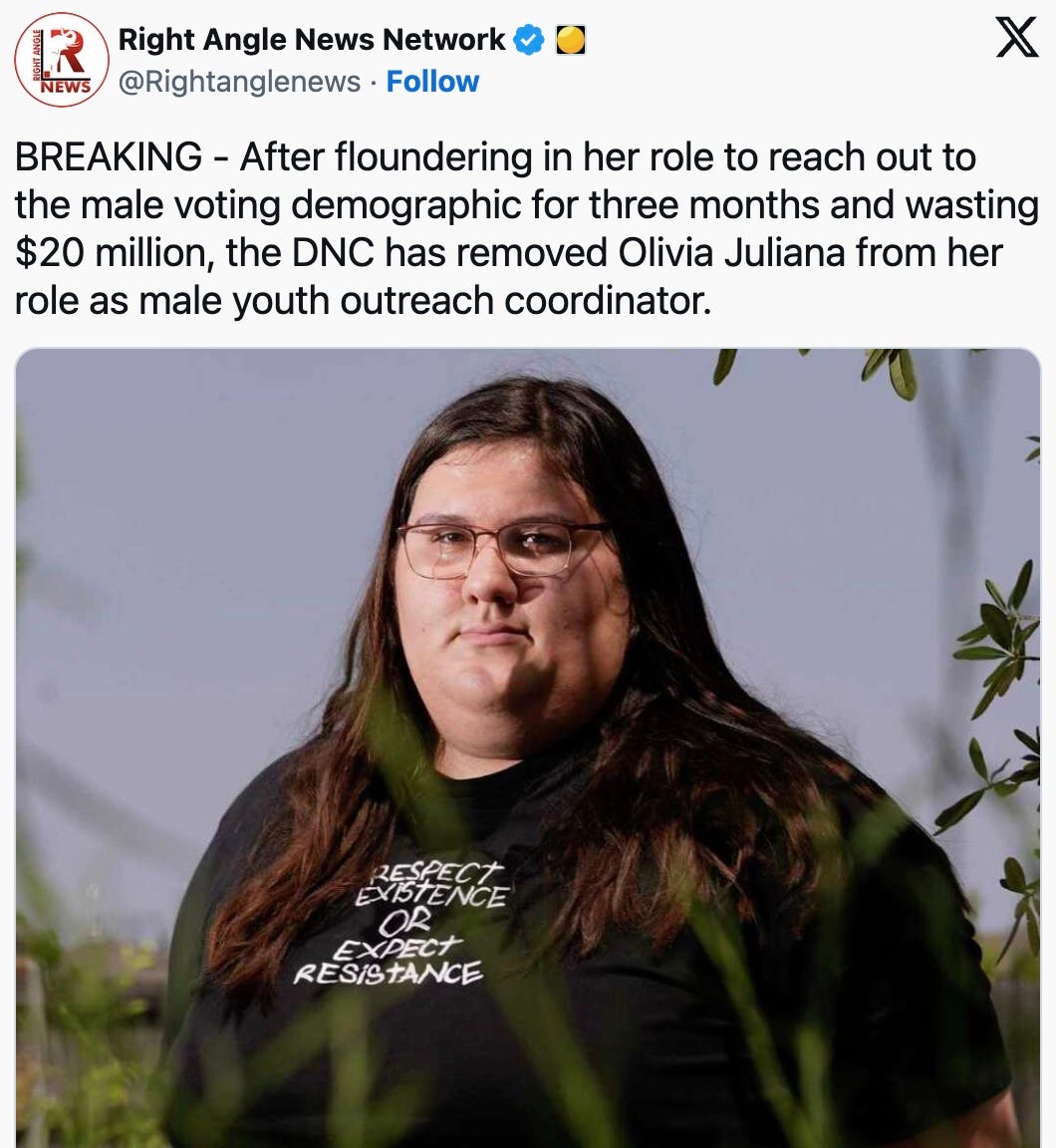 This truth has become more and more visible as the days and weeks tick on in our new Golden Age. Democrats say they want to really listen to men and then appoint a rabidly woke, obese, feminist lesbian to lead their male outreach program.