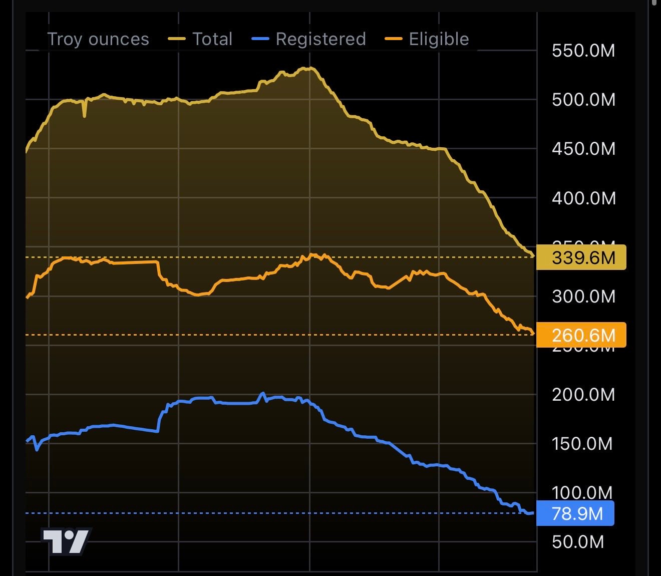 The paper price looks terrible. Miners are trading like silver is heading back to $40. Silver Santa – one of the accounts I follow on Twitter (yeah, I’m old) – moved 40% to cash, describing “a strong pre-COVID feeling”. The technical picture is ugly.