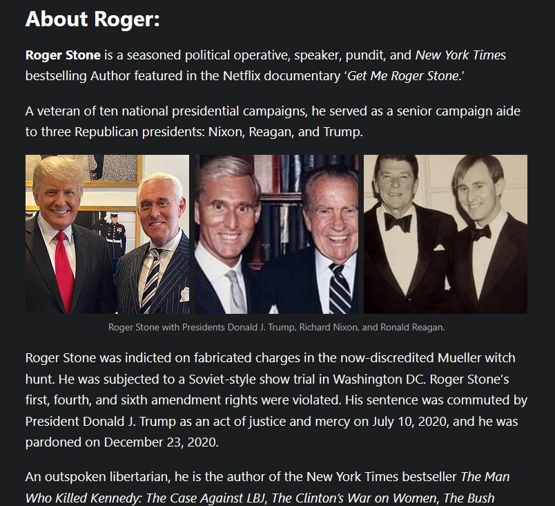 The thinking of Trump’s circle has best been explained by libertarian author Roger Stone. Best-selling investigative journalist Stone was indicted on fabricated charges in the now-discredited Mueller witch hunt. His sentence was commuted by Trump in July 2020, and he was pardoned that December.