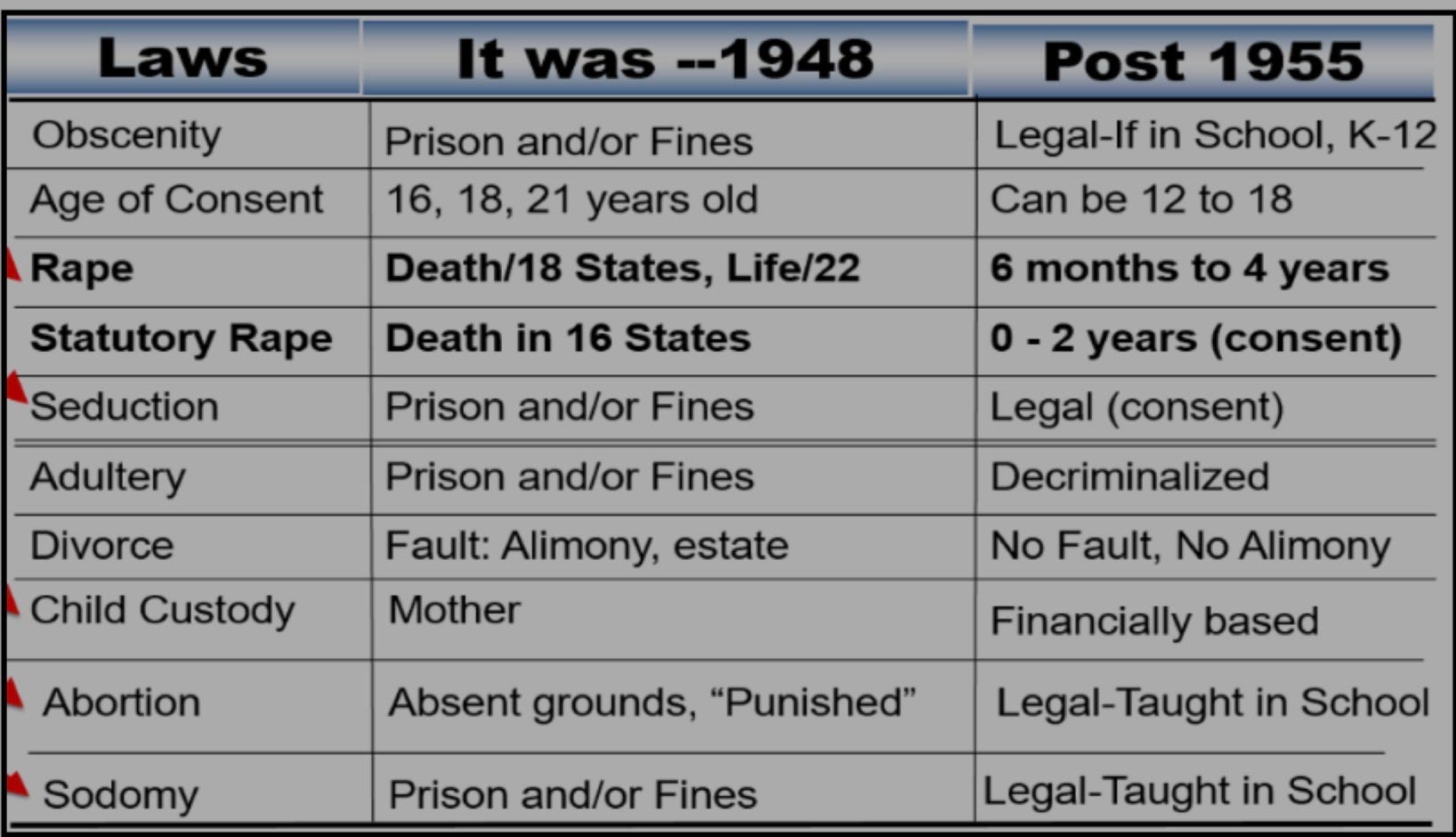 Kinsey stated that were it not for social repression of all other urges, to Kinsey, almost everyone would be engaged in every type of sexual activity. In Kinsey’s world, if all moral taboo was removed, then humans would engage in every activity without remorse or consequence.