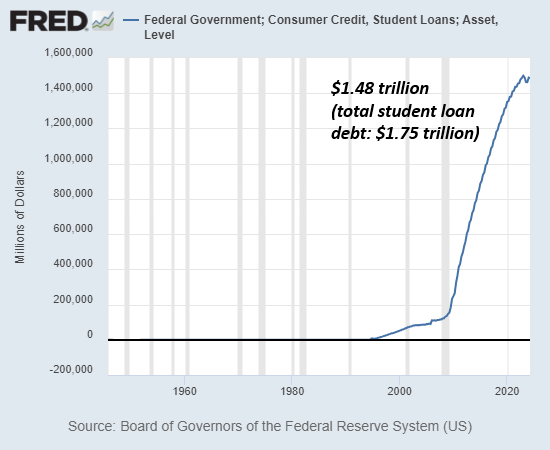 Turning to the social and economic sources of stability, security and opportunity, consider the astounding rise of student loan debt, as attending college / university went from being affordable to requiring lifetime debt serfdom.