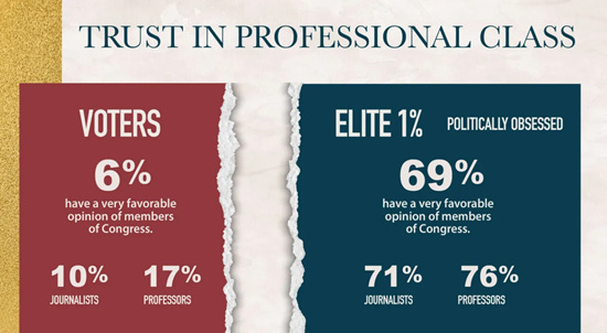 Trust in elites and institutions reflects the wealth-income divide. The top 10% reckon everything’s going great because they’re doing great. Meanwhile, the bottom 90% live in a completely different world.