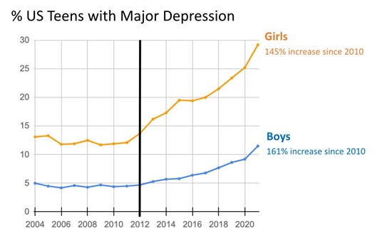 As for mental health, consider teen depression rates. Teen suicide rates have also risen. There is no way to interpret this as healthy.