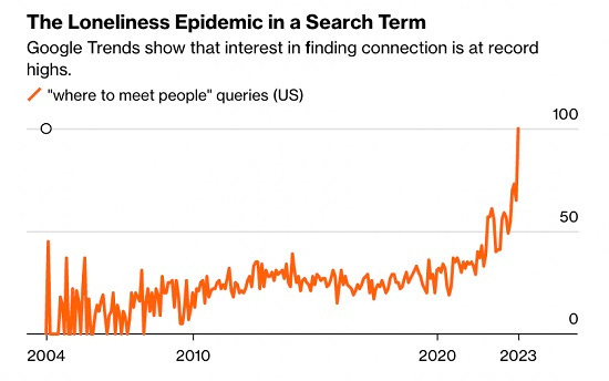 Loneliness–a measure of declining social connections–is also rising sharply.