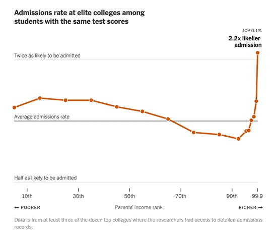 Being born into a wealthy household offers numerous advantages that are difficult for those without these advantages to match. Admissions to elite university reflect this divide. This reflects a neofeudal economy and social order.