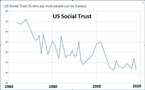 The health of the society is a key element in stability, security and opportunity. Social trust is eroding.