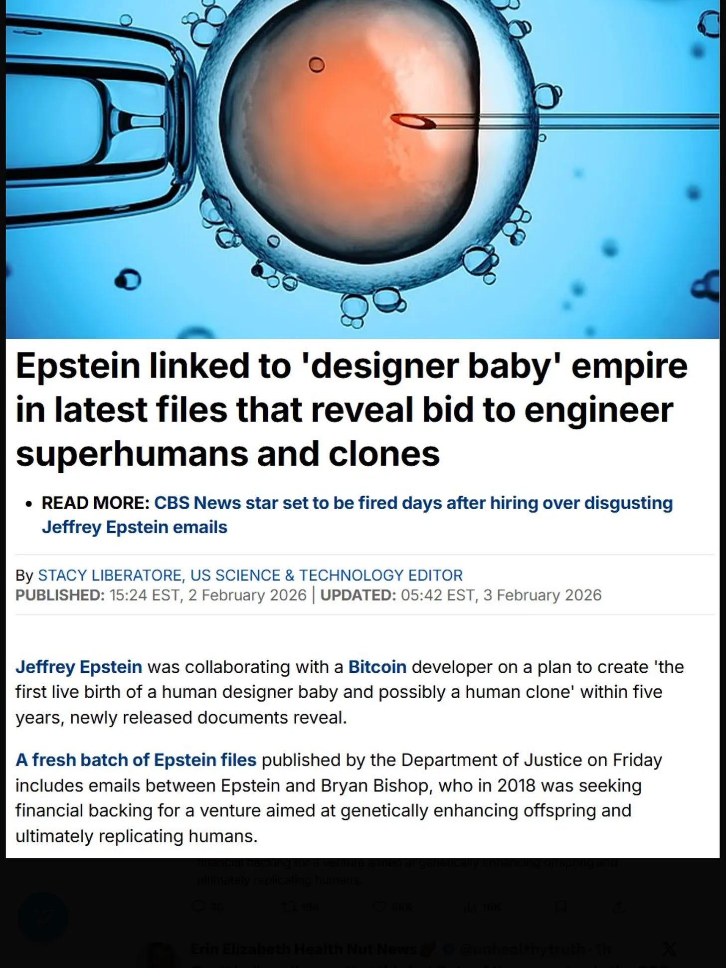 Epstein was using baby tissue/FGF (Fibroblast Growth Factors) to try to enhance his penis, making a “bionic penis” via the society urologist, Harvey Fisch. The persistent references to babies and cream cheese was sleuthed out by a young neurologist who suggested that the ‘cream cheese’ is the substance found on the skin of a new born baby called Laminine. It contains FGF and Epstein bought it from someone mysterious and passed it around as a fountain of youth. Laminine and its acquisition form several email threads and this Laminine is not the one that Amazon sells either. How many newborns do you need for the substance?