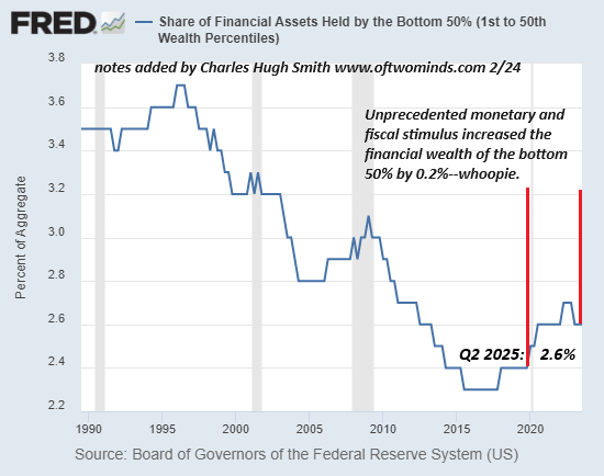 The fantasy-fake solutions of both the left and right distill down to financial-technocrat fixes that leave the engines of inequality untouched, as those proposing the faux fixes don’t dare upset the gravy train that’s enriching everyone in the top tier of the status quo.