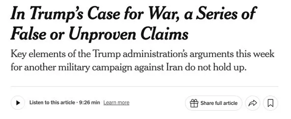 And the NYT again worked overtime to debunk Trump’s justifications for war: