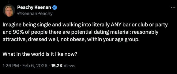 I’ve attended some really cool parties in LA, so it is not like I am a loser who doesn’t get invited to parties. There are these micro scenes like sort of Dime Square adjacent, with art hoes, even though that brand is dated and cliche. Beyond just dating, there is no sense of community unless you are rich, part of some ethnic immigrant community, or niche social scene, which I sort have found. During the millennial Hipster era, there were more opportunities to achieve status through creativity while zoomer culture is more superficial, even if LA has always been a tad materialistic and status obsessed. It is part of a broader enshattification that is hitting the country at large with smartphones, and dating apps. Us elder Millennials were the last generation to experience society before all that.