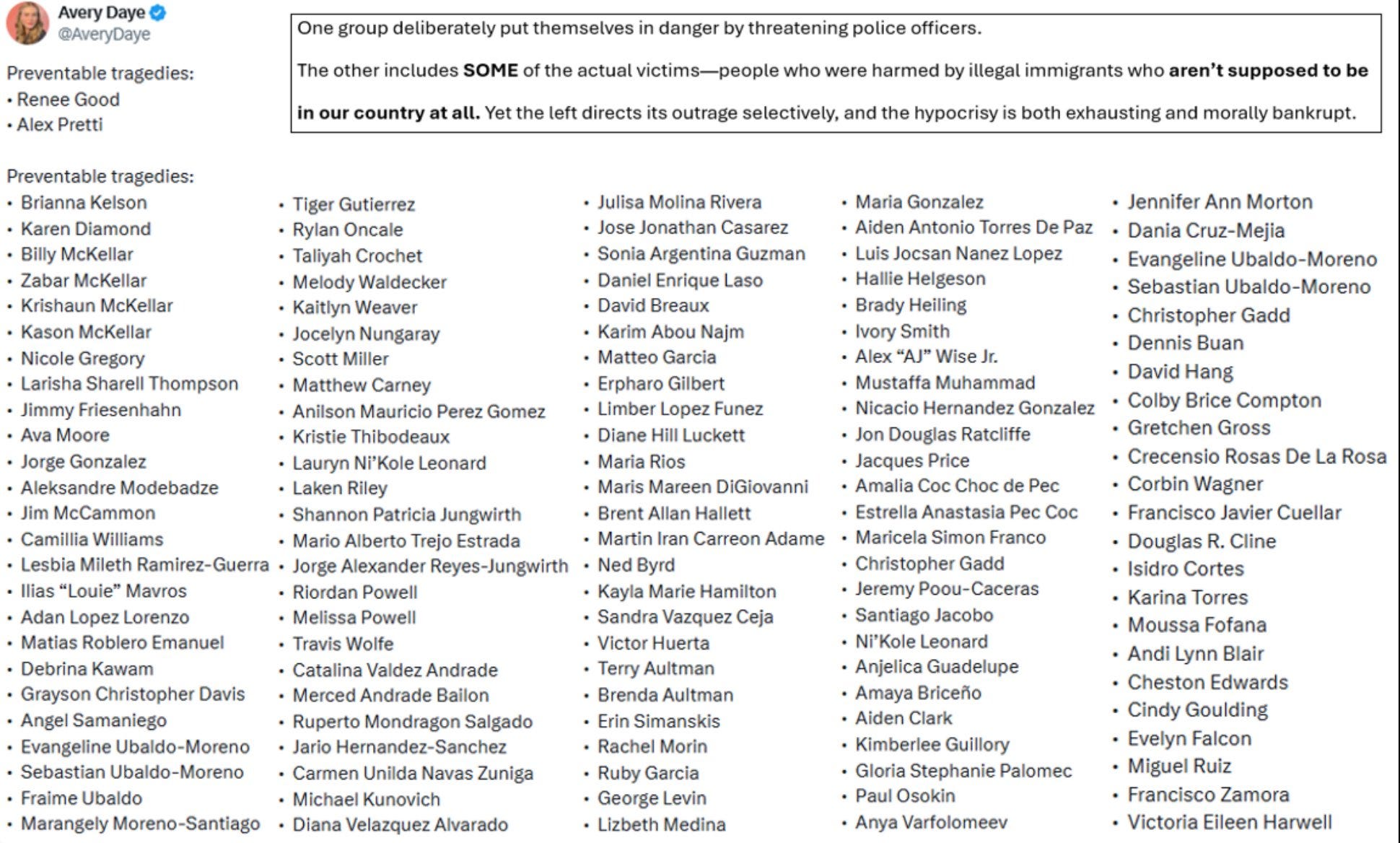 Another far more dynamic approach—and one that must be embraced irrespective of whether there is ultimately any indictment in connection with this shooting or not—concerns countermeasures and counterstrikes. The most effective way to respond to the Pretti shooting and other adverse events that arise from ICE “protests” is not to resort to a passive defense, but precisely the opposite. The Trump Administration must embrace any countermeasures that are both effective and available in response to any such crises such as this shooting. Invoke the Insurrection Act to crush demonstrations in Minneapolis and elsewhere. Couple this bold initiative with indictments on a wide range of matters, from the Somali daycare fraud scandal (and comparable scandals in California and elsewhere) to actionable incitement against legitimate federal law enforcement action to apprehend and deport illegal aliens. Particularly if combined with a minimally competent propaganda campaign that impresses upon the public the widespread death and suffering attributable to Democrat policy, such a bold counterstroke would effectively deflect attention from various excesses of ICE, whether simply perceived or legitimate. Juxtapose the death of Alex Pretti with the long list of Americans who have been killed or harmed as a result of the free-for-all Democrats have given illegal, third-world hordes. If an indictment of the officer or officers involved proves to be either a political or legal necessity, the Trump Administration must abide by a certain axiom in war and politics: if they take one of ours, we take so many more of theirs. The overriding imperative is that the Democrats and the left must—in all circumstances—be rendered in a worse position after these insidious efforts than they were before. If officers involved from this incident must be indicted, either from legal or political necessity, be sure to indict Walz, Frey, and anyone else so that any damage to Trump’s deportation efforts are eclipsed by much greater damage to the Democrat party.