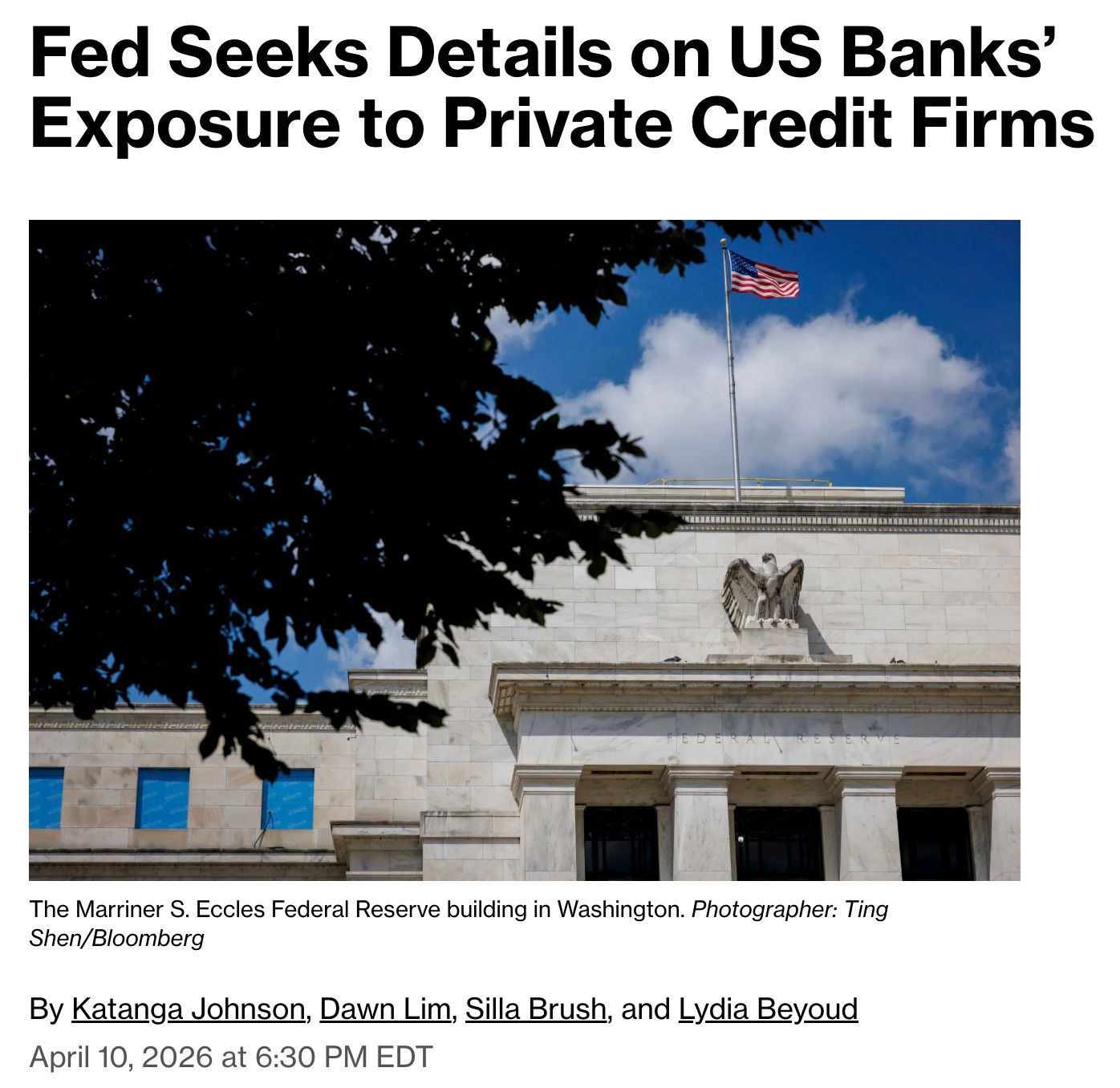In the last two days alone, Bloomberg reports that the Federal Reserve has gone from politely observing to actively interrogating. Not in a press-release, “we’re monitoring conditions” sort of way, but boots-on-the-ground examiners asking major banks to cough up details about their exposure to private credit.