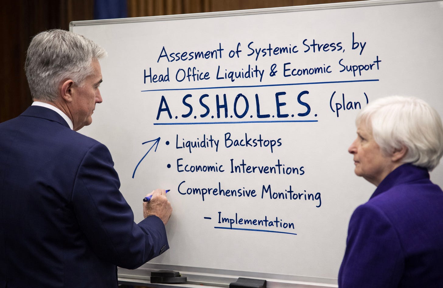 Let’s not pretend we don’t know where this goes. When the Fed starts mapping exposures like this, it’s not because they’re writing a research paper. It’s because they’re quietly preparing the intervention. Maybe it’s a backstop. Maybe it’s liquidity support. Maybe it’s some creatively named facility that sounds temporary but lingers for years (something like the “Assessment of Systemic Stress by Head Office Liquidity & Economic Support” plan, or A.S.S.H.O.L.E.S. for short).