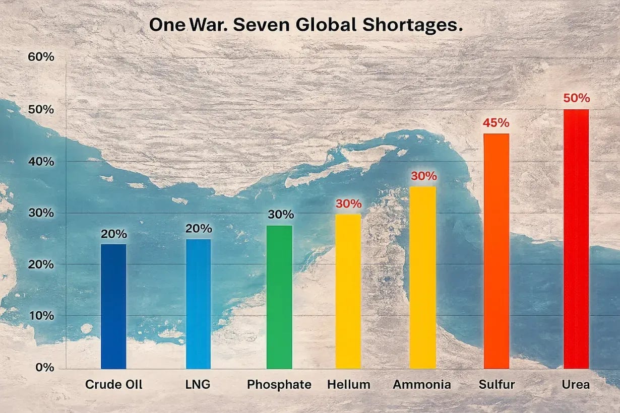 Crude oil, LNG, phosphate, helium, ammonia, sulfur, urea. Pay for one war, get seven shortages for free!