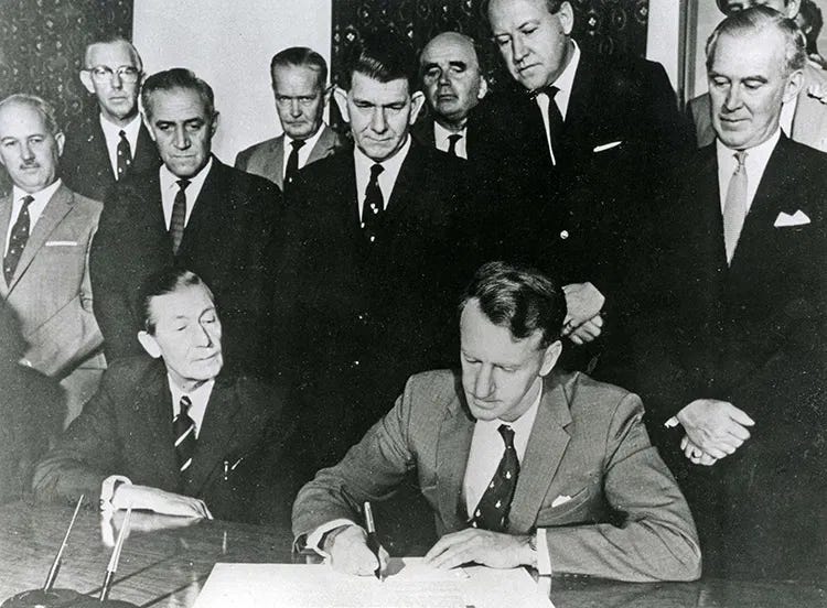 If the declaration was an earthquake in Southern Africa, its seismic waves immediately fractured the political foundations of Westminster. In London, UDI was a significant psychological rupture that laid bare the raw nerves of post-imperial decline. The Labour Prime Minister, Harold Wilson, moved swiftly to condemn the “illegal regime” and, while ruling out direct military coercion, opted instead for punitive economic sanctions and an aggressive oil embargo.10 But for the Conservative Party, then in opposition and led by the technocratic moderniser Edward Heath, the Rhodesian question forced an agonising internal reckoning.11