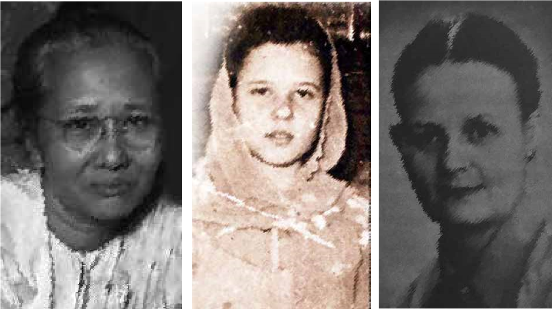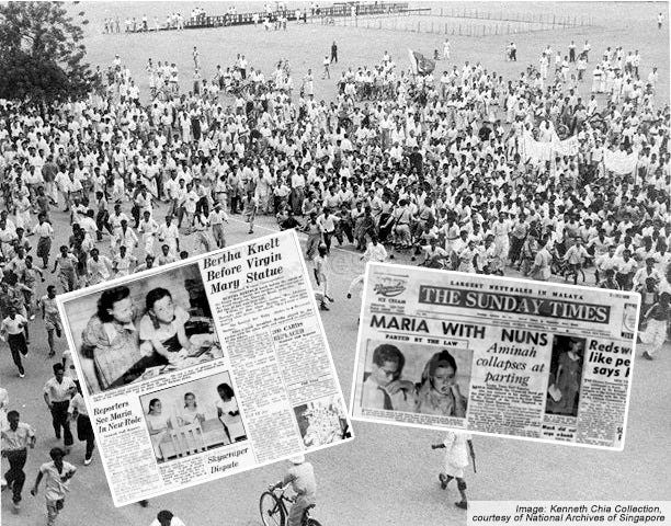 Thirteen-year-old Maria (centre) was caught in a court battle between her birthmother Adeline Hertogh (right) and her adoptive mother Aminah Mohamed (left).
