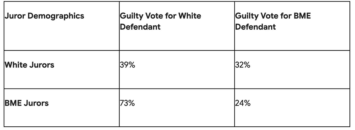 The United Kingdom is not immune to these exact same forces. Research by Cheryl Thomas at UCL provides what can only be described as the smoking gun of ethnic jury nullification.