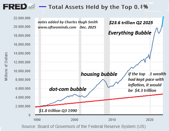 Since the forces seeking to decentralize capital and power are distributed among numerous competing interest groups, the forces of centralization have the upper hand until the second-order effects of their self-serving control brings the system to its knees. The struggle just ahead is the primary conflict between the forces seeking to further extend over-extended centralization and those seeking to distribute capital and power beyond the tiny self-selected elite that defines “progress” and “prosperity” as whatever increases their concentration of capital and power at the expense of non-elites.