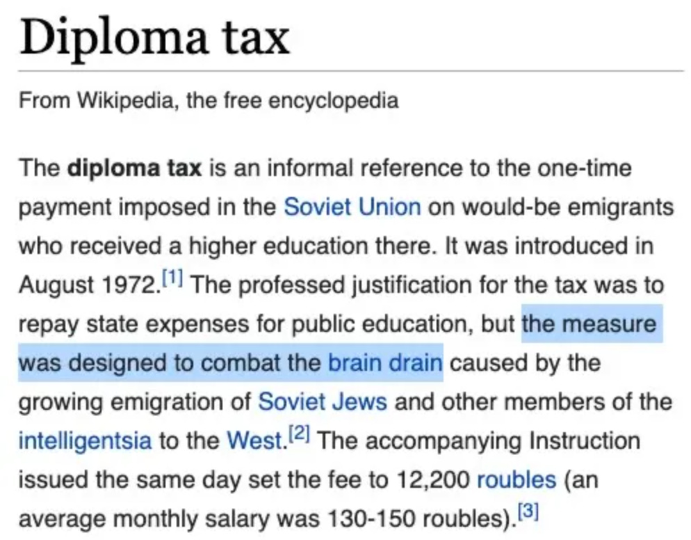The Soviets imposed “diploma taxes” on educated emigrants.