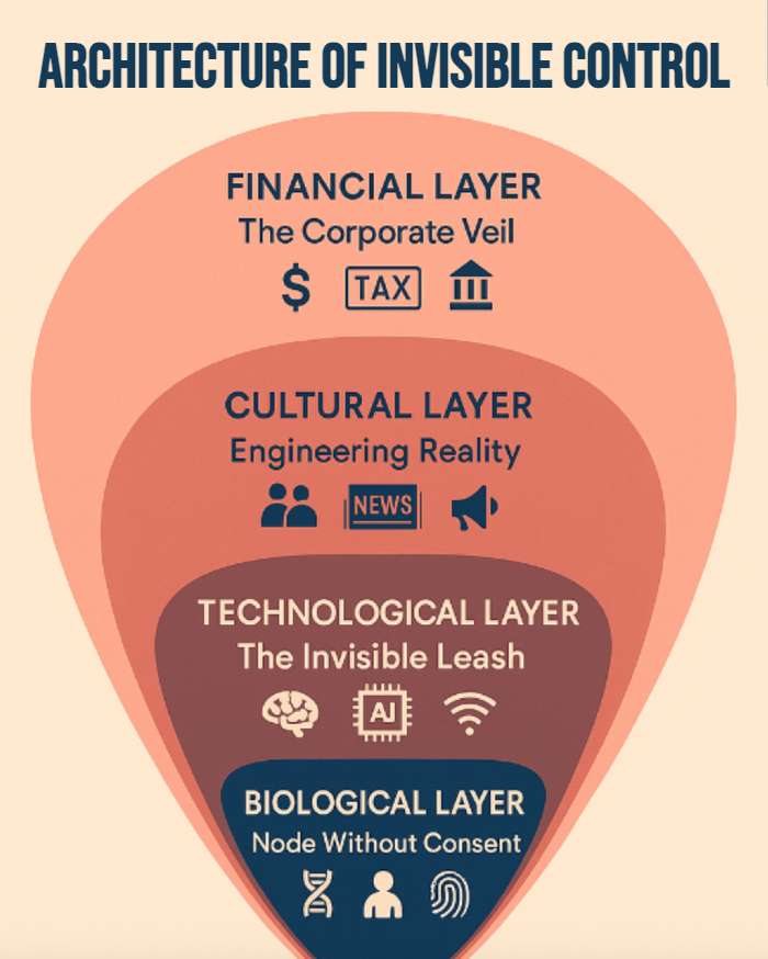 The financial layer (documented in The Corporate Veil) reduces you to a revenue-generating entity through legal frameworks that treat citizenship as corporate registration.