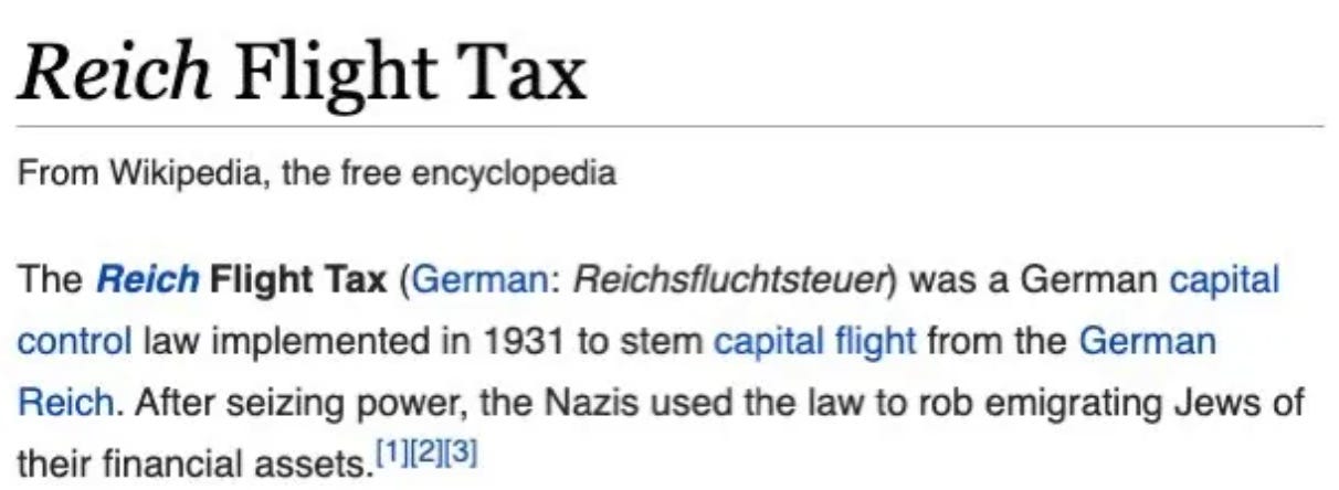 The Nazis implemented the Reich Flight Tax in 1931 to rob emigrating Jews of their assets.
