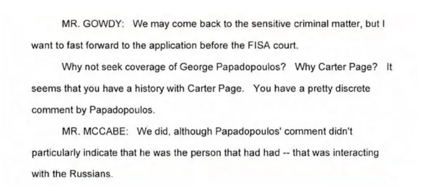 Screwing up “dirt” and “thousands of emails” is bad, but the McCabe testimony shows the FBI knew in in August of 2016 that Papadopoulos was a dead-end. But “current and former American officials” polished that turd and fed it to the Times a full year and a half later. The paper then used it for its blockbuster tale about how Papadopoulos played a “critical role” in the Russiagate drama.