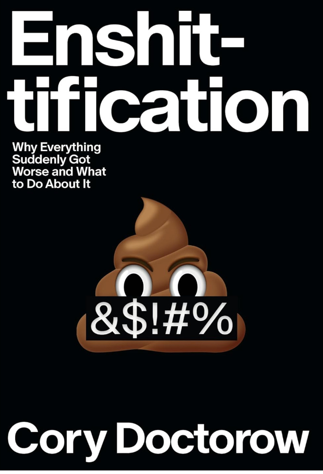 Enshittification is a term invented by a tech writer, Cory Doctorow, who meant it as a criticism of social media, once functioning, then flooded with ads, then corporatized, more ads, then abandoned.
