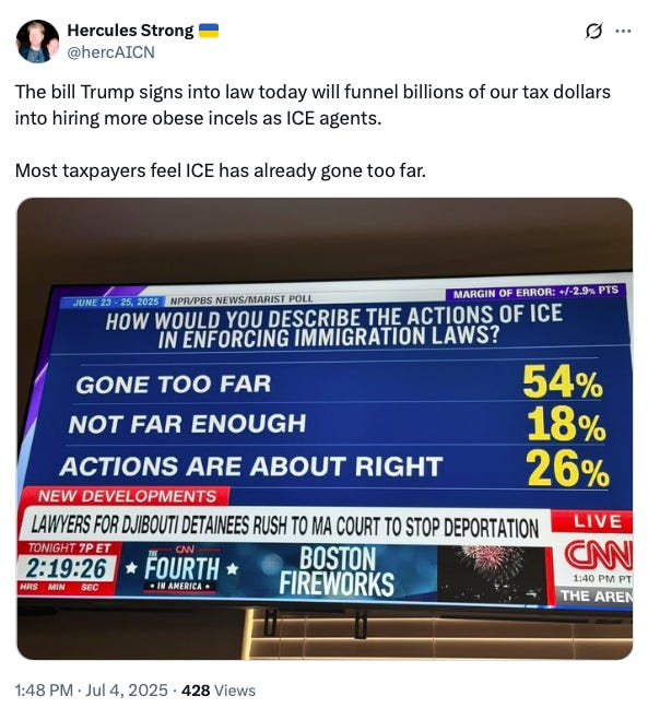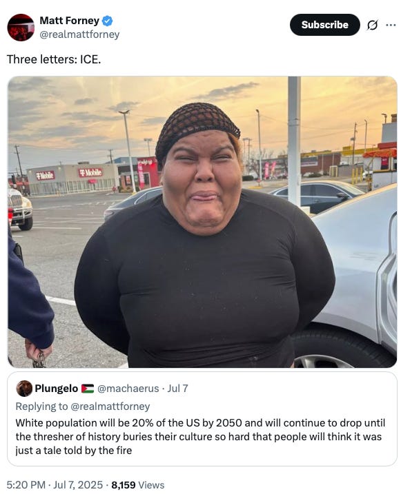 You have liberals unirically claiming that Trump is going to recruit incels to become ICE agents, a way to link perceived cruelty to low sexual status. Similarly, liberals smear Stephen Miller as an incel, implying that he is taking out his rage on immigrants for not getting laid in his youth, despite him having a pretty Jewish wife. Even though immigrant men overall have lower social and sexual status, there is this trope that those who oppose immigration are afraid that immigrants are going to steal their women like the trope that they are losers who can’t compete economically. I also hear lower status terminally online rightwing men get jealous of the illegal immigrant men, thinking that they have some cute trad virgin from their home country. This is absurd as these illegal immigrant men often live miserable lives, working long hours for low wages, and are either incel or with undesirable women.