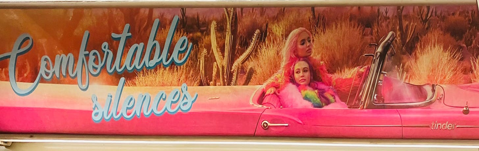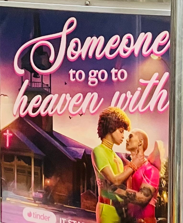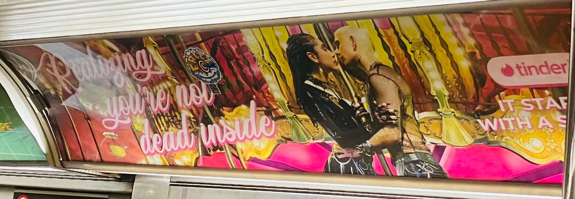In particular, while riding the subway, I stumbled upon a series of posters for the dating app Tinder that struck me as clear evidence of our growing cultural insanity.