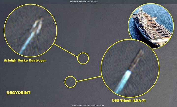 Separately, the USS Tripoli was spotted outside the Gulf of Oman at about 21.00916° N, 60.37561° E (click to enlarge):