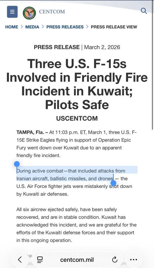 Further, recall the Kuwaiti fighter jet that shot down three American F-15s. The most important nugget during that event was that US forces had been fending off attacks “from Iranian aircraft”: