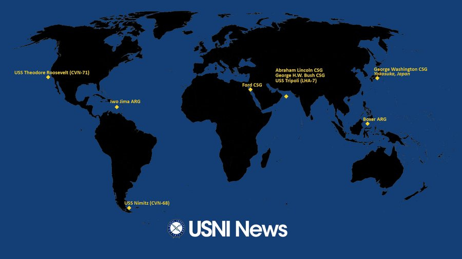 Let us begin with an update on the position of US carrier groups, as it informs us a bit as to the US’s current posture toward Iran.