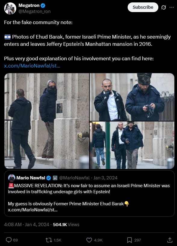 Visual evidence has surfaced previously, showing Barak entering Epstein’s Manhattan mansion, alongside a number of high-profile connections to Epstein documented over the years.