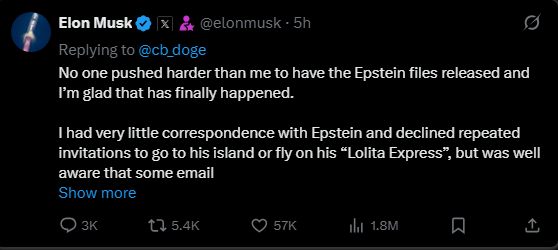 In other words, the evidence remains what it has been for years: Epstein wanted to be close to Musk, worked to make that happen, and may have gotten as far as some friendly emails and schedule‑jockeying—but nothing in the public record shows Musk as a client, business partner or co‑conspirator.