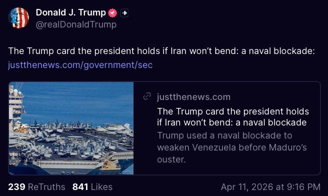 Meaning, Iran’s control regime over Hormuz as now exercised will place the global economy under intolerable pressure long before any credible blockade by the US (and vassal navies) could be launched. And what would be the response to Chinese—and possibly Indian—naval presences? This is crazy talk that looks as unworkable as the current war.
