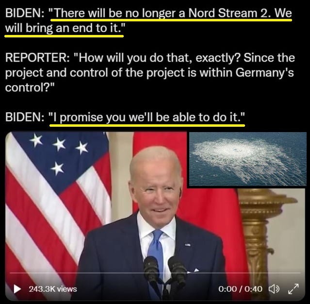 For example, inexpensive Russian LNG going to Europe via Germany posed the threat of creating a potent European-Russian economic bloc, so the USA sabotaged the Nord Stream Pipeline in 2022. (Yes, we did it.) YouTube video link.