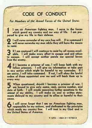The other poster was the Code of Conduct for Members of the US Armed Forces, with the first paragraph presented in larger bold text in order to stand out: