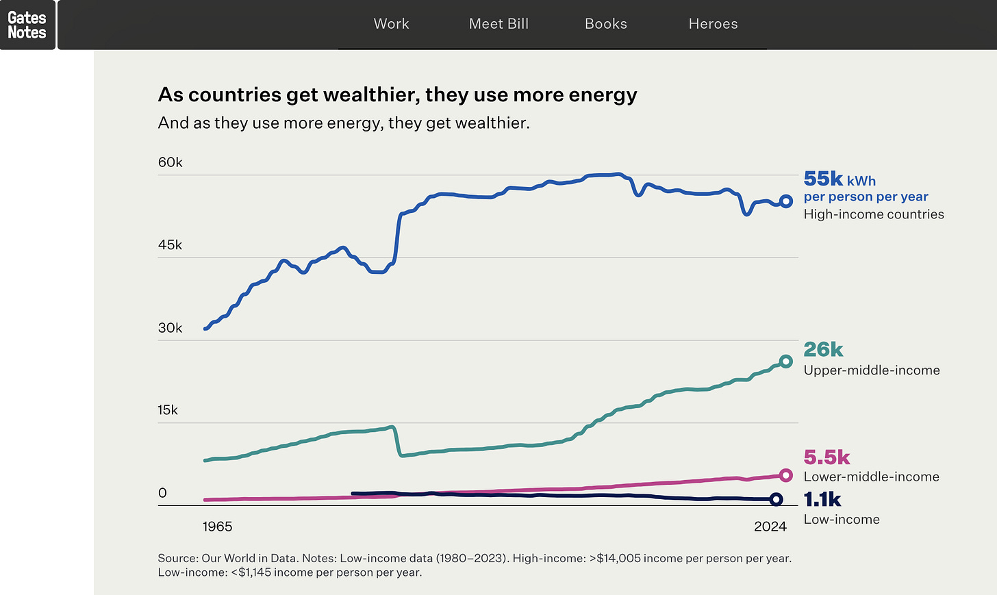 The solution, according to Gates? More innovation, more technology, more AI. (Didn’t AI already consume more energy than people will ever need???) Innovation via his ‘Breakthrough Energy Companies’ will lead to ‘a zero-emission economy’. “To decarbonize the other sectors, we’ll have to electrify a lot of things that currently use fossil fuels.”